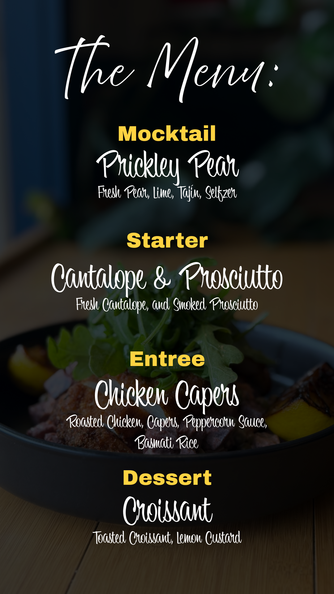 Our intimate dinner is a cozy elevated experience designed to slow things down and savor the moment with friends, live music, and great flavors.